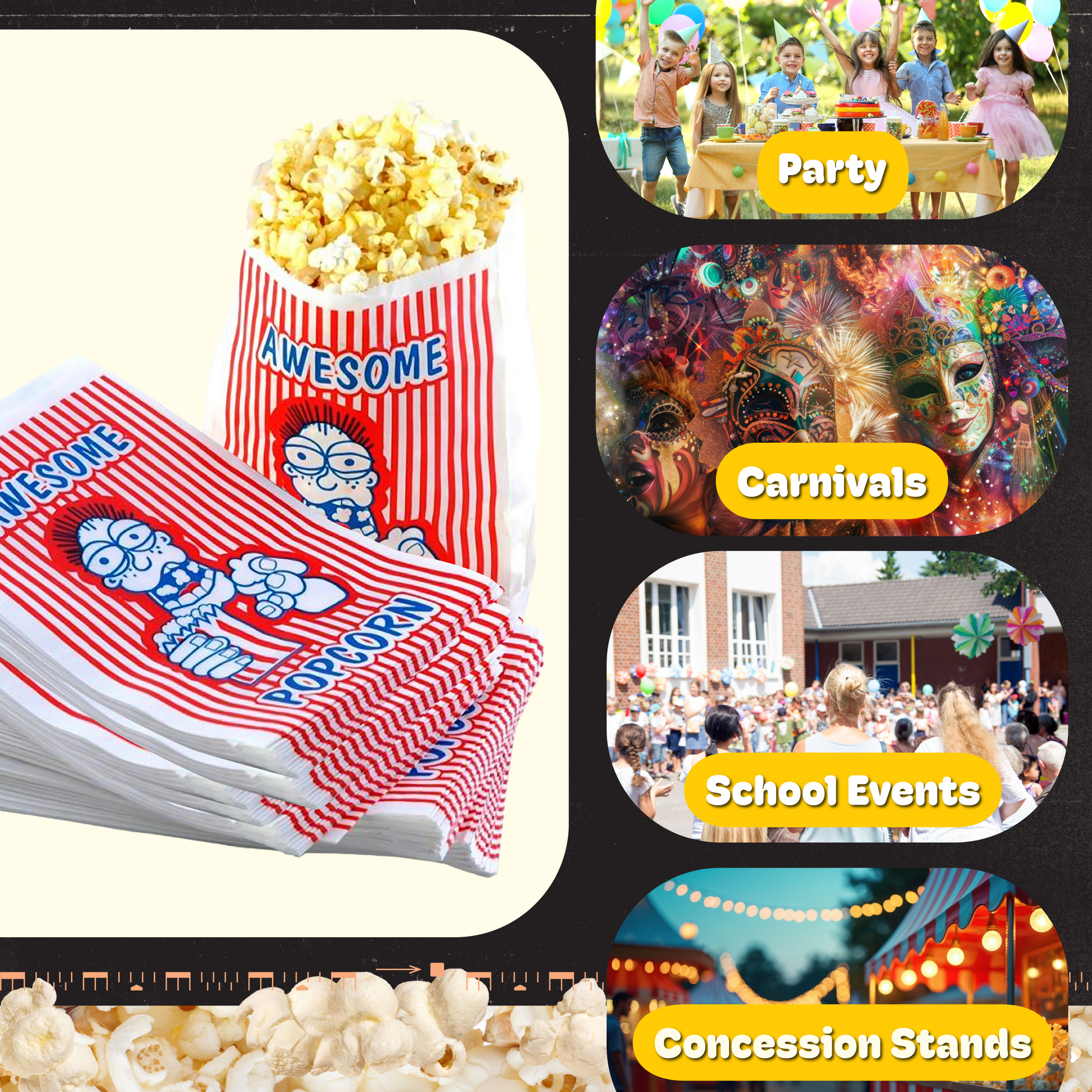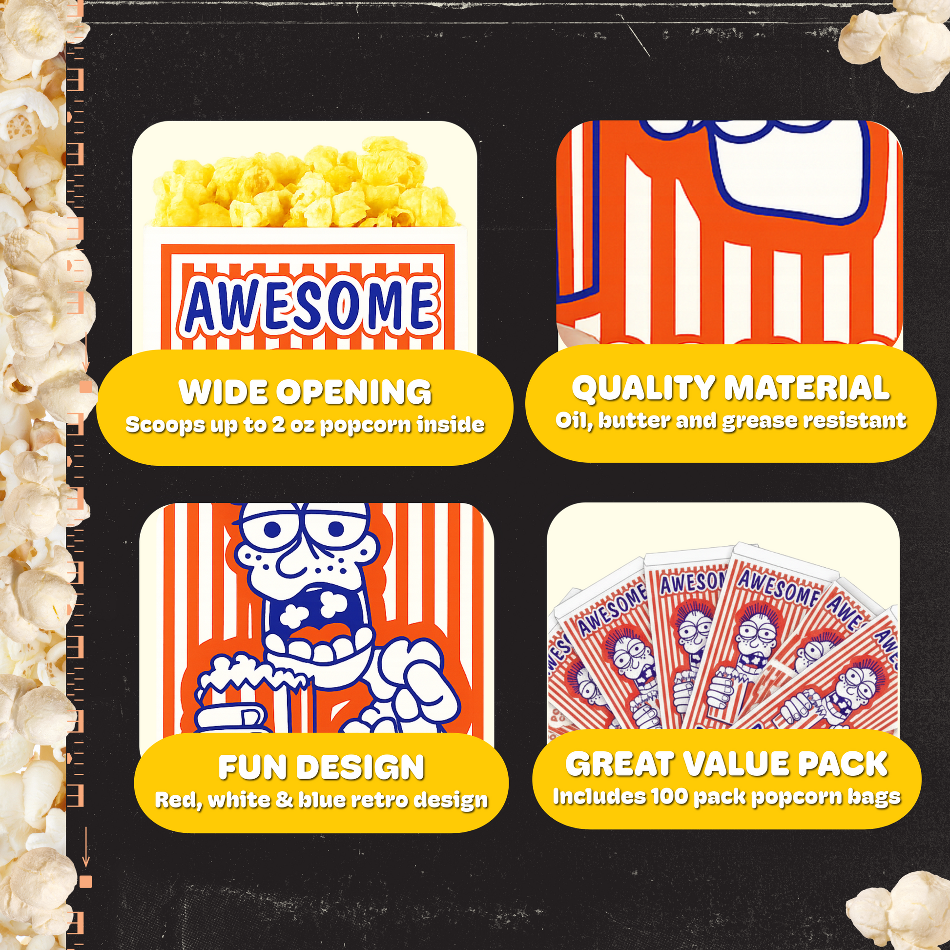 - With their 2-ounce capacity, these popcorn bags for popcorn machine are the perfect snack-sized containers for easy carry-out