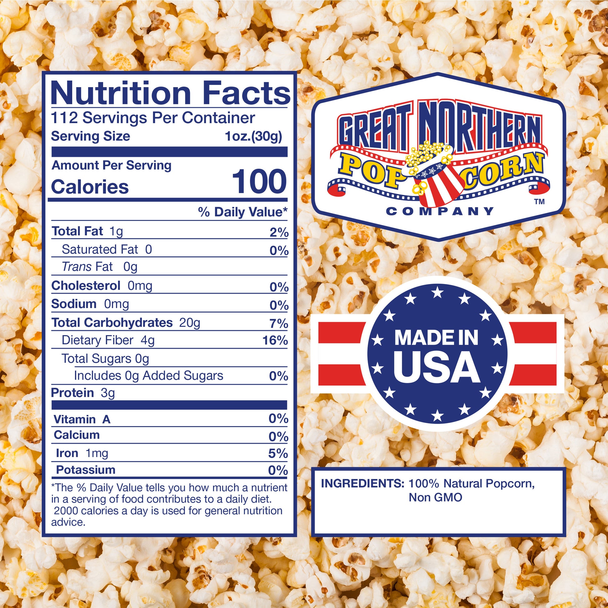 - This popcorn gift set includes a 7-pound bulk jug of USA-grown, non-GMO gourmet yellow popping kernels