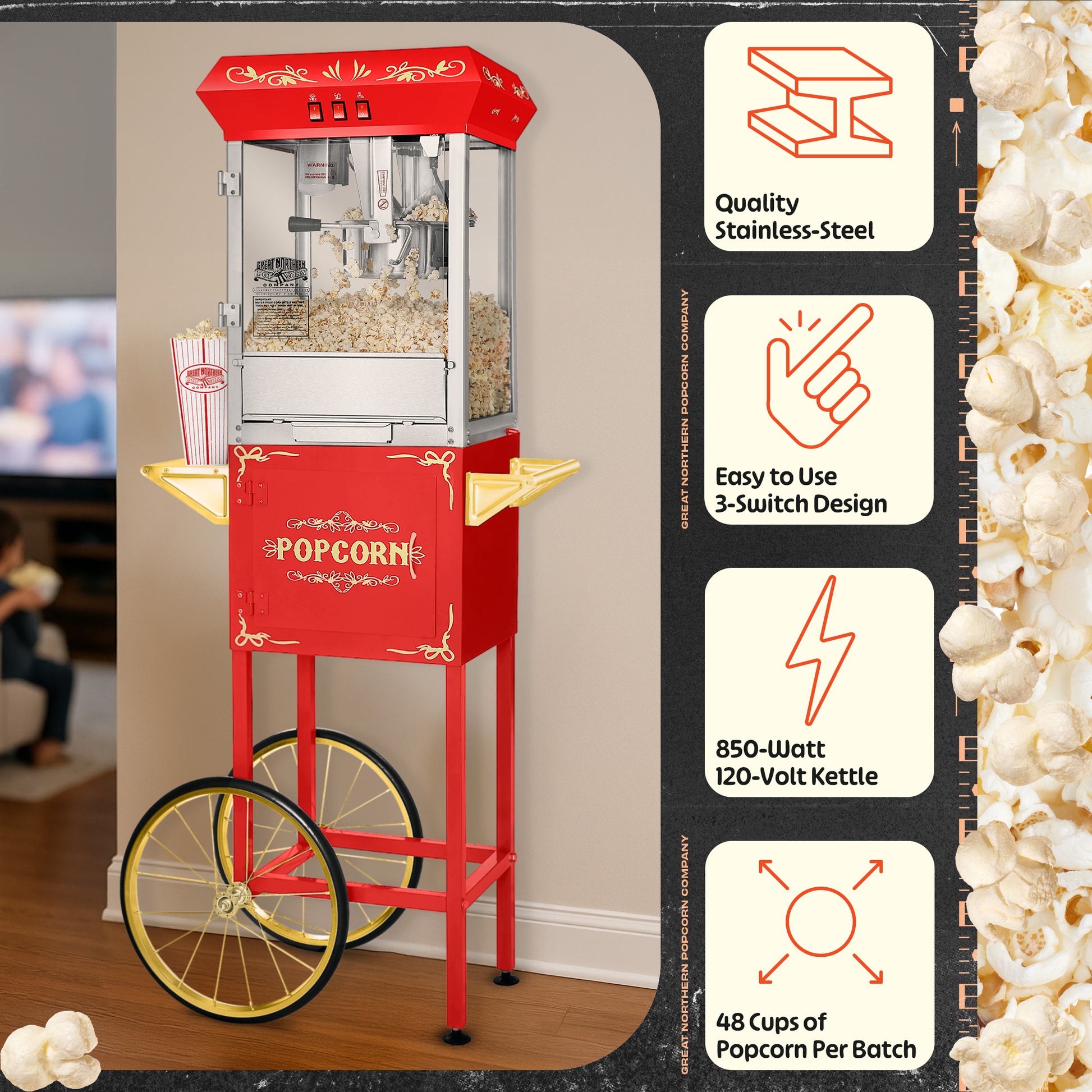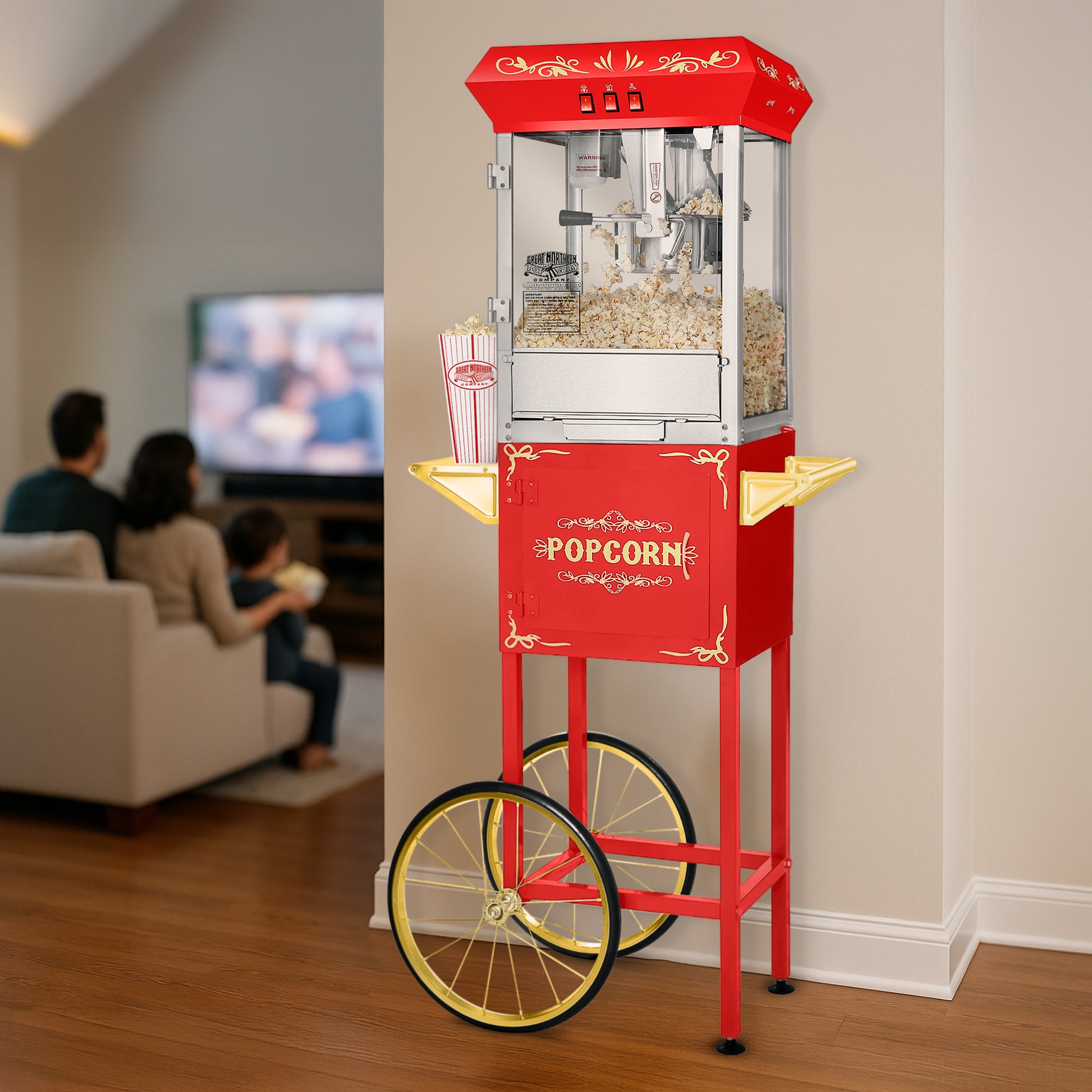 Great Northern Popcorn 8oz Popper with Cart, Red