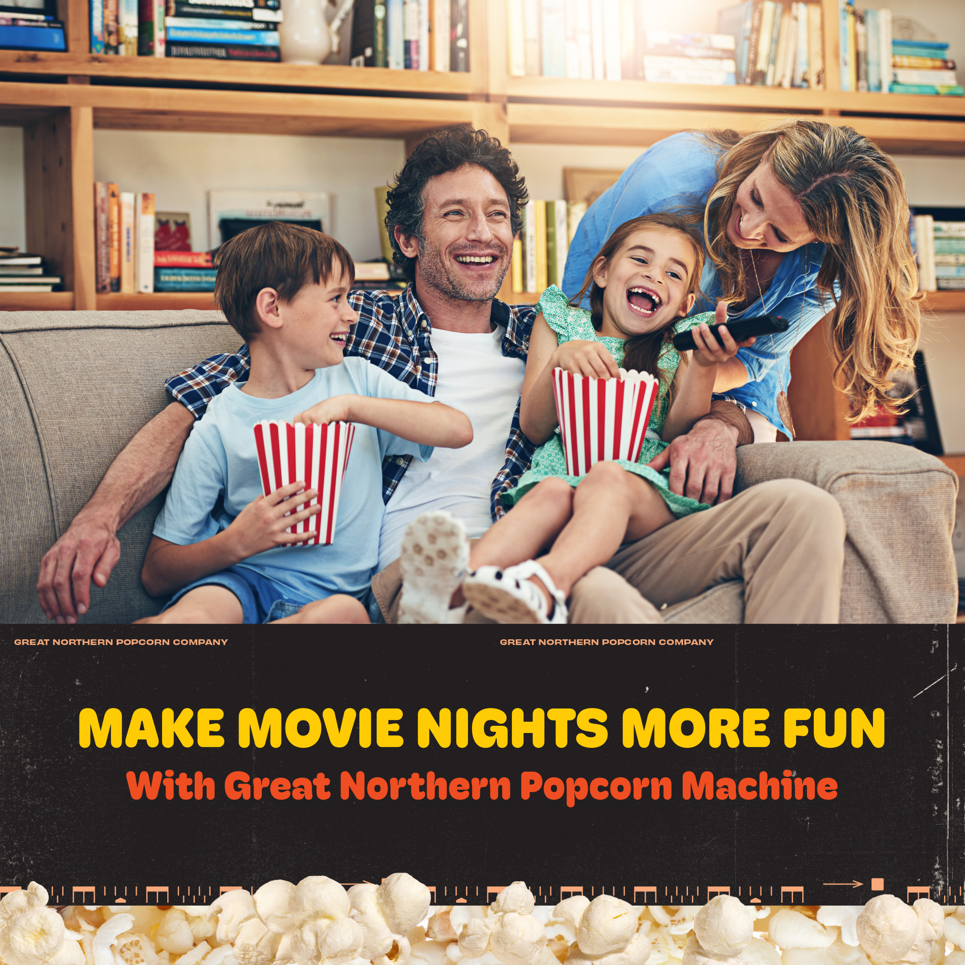 - The home theater popcorn machine includes a 4-ounce stainless-steel kettle that makes about 1.5-gallons of popcorn in minutes to serve many guests quickly