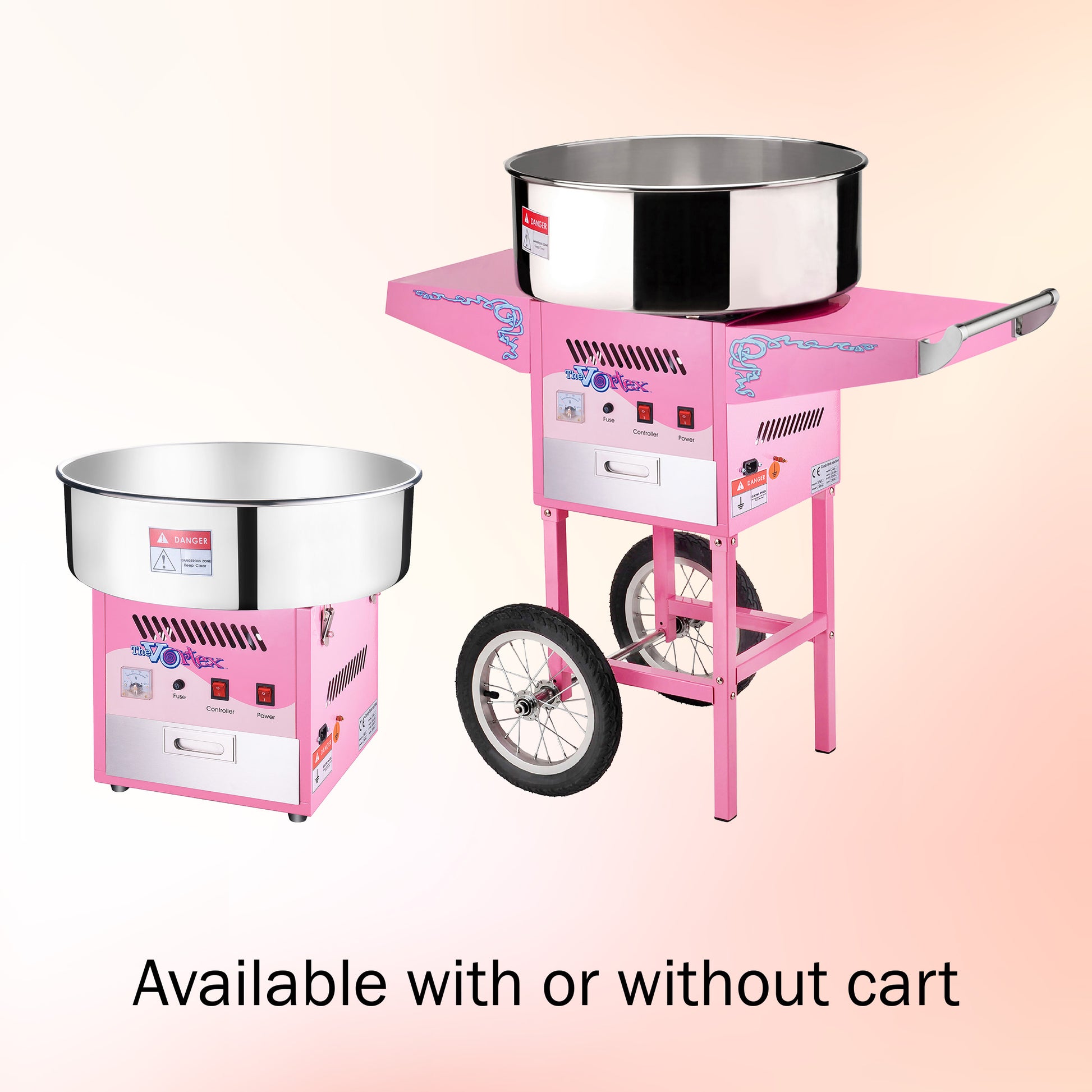 Cotton Candy Machine with Cart Vortex Candy Maker with Stainless-Steel Pan, 2 Side Trays, and 13-inch Wheels by Great Northern Popcorn (Pink)
