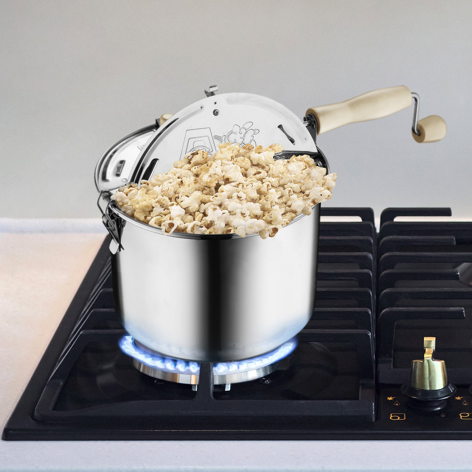 - This old-fashioned popcorn maker includes a stay-cool wooden handle, durable metal gears, and a built-in paddle for stirring the popcorn to prevent scorching
