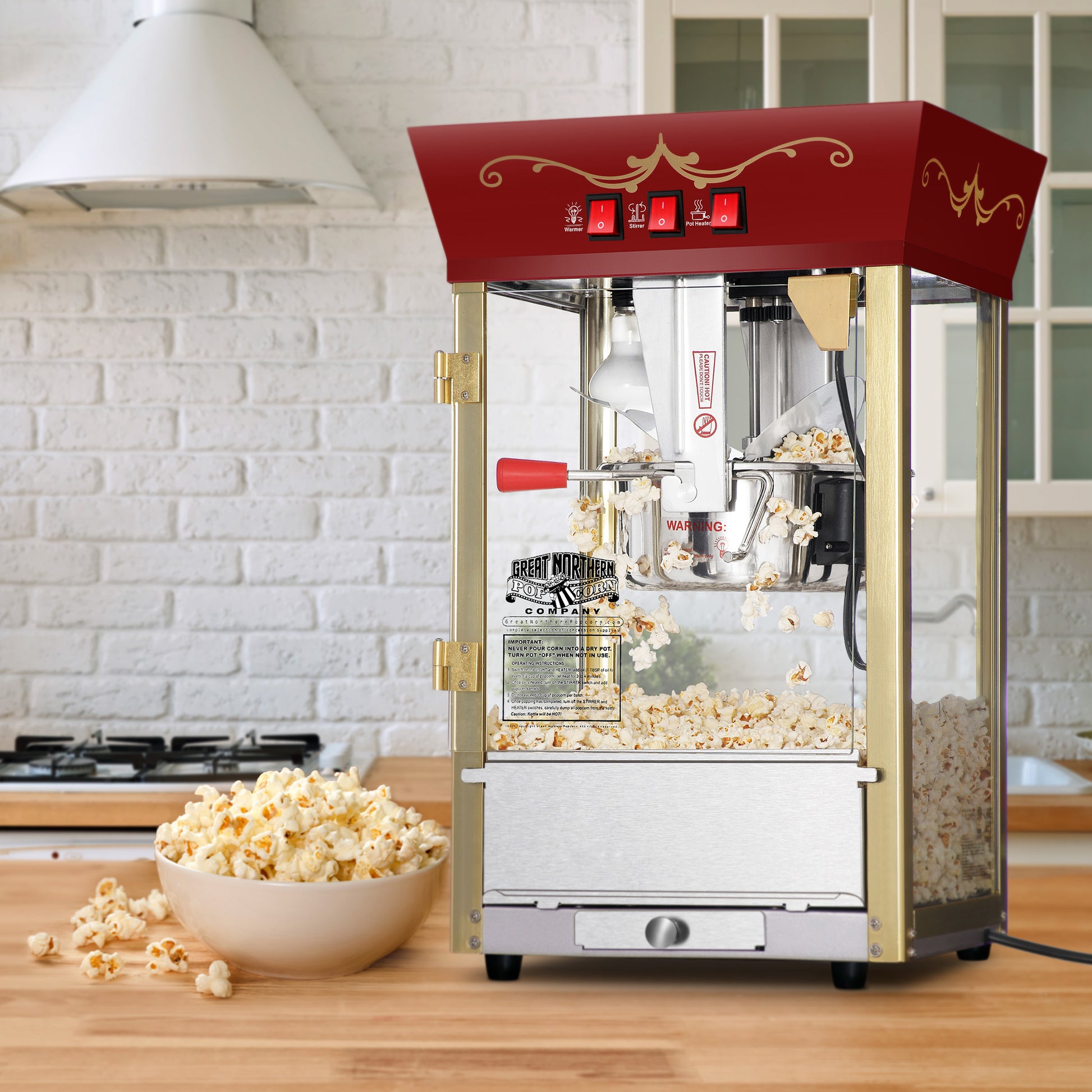 - The 3-switch design lets you use the kettle heater, stirrer, and warming light independently, popping up a tasty batch of everyone’s favorite salty treat in just minutes